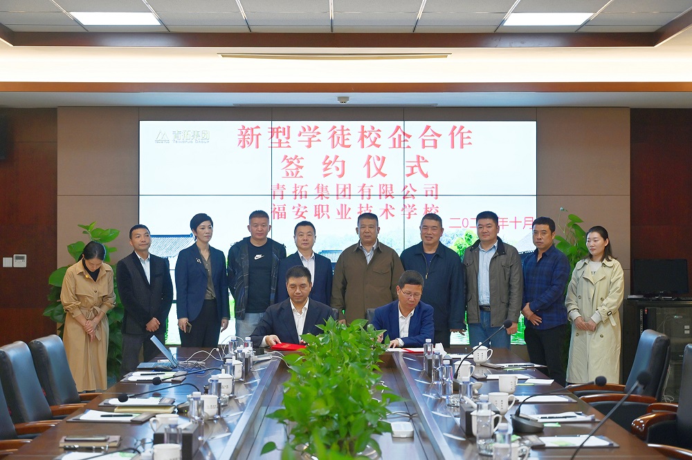 签约仪式上,青拓集团和福安职业技术学院建立了新型学徒校企合作关系,刘永清详细介绍了企业目前学徒培训现状,双方就新型学徒重点专项课题进行了深入探讨。