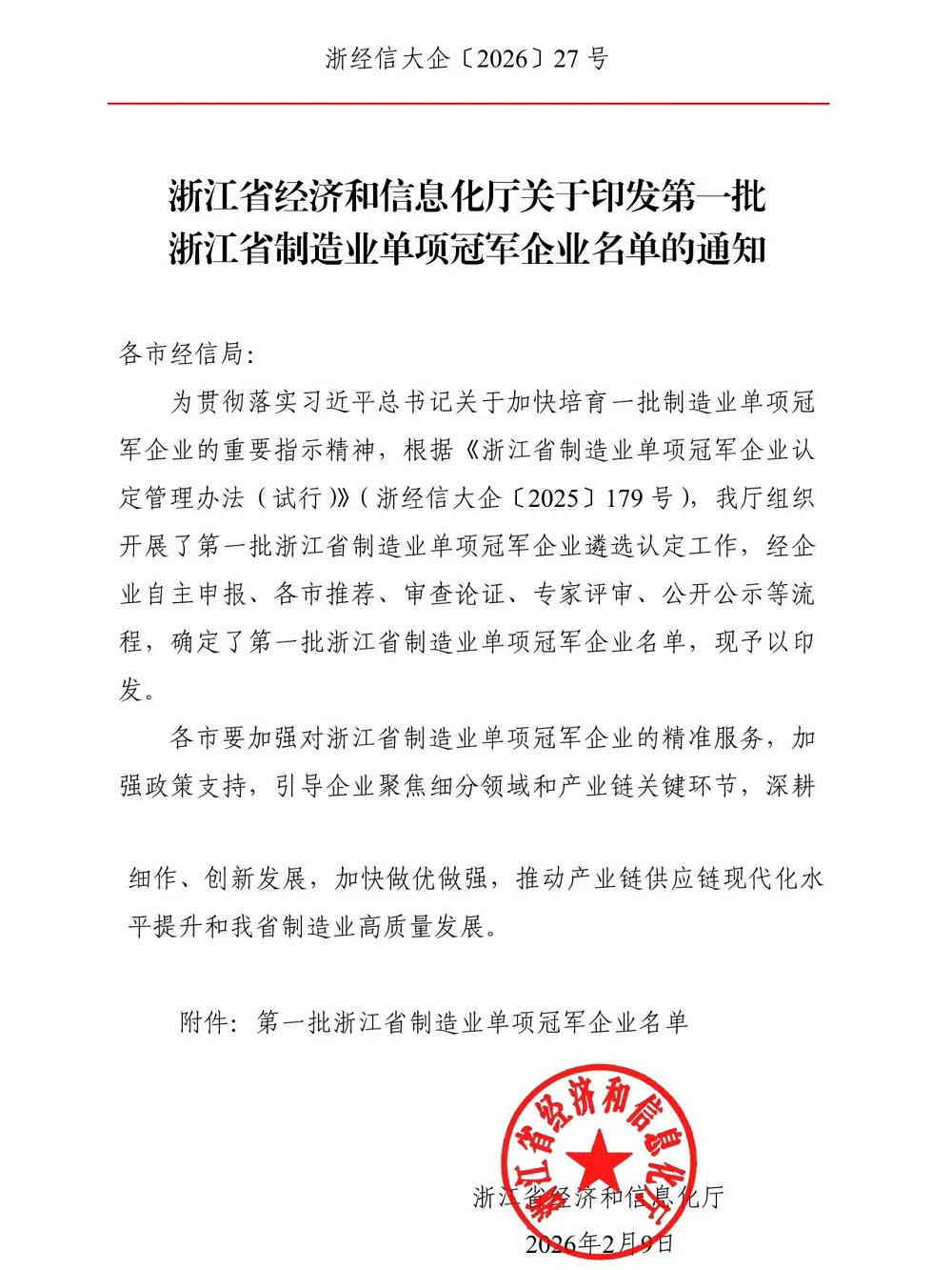 近期,浙江省经济和信息化厅公布了浙江省首批制造业单项冠军企业名单,瑞浦兰钧能源股份有限公司成功上榜!
